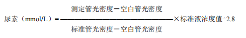 10 mmol/L 尿素标准液(尿素 28.01mg/dL):精确称取尿素(AR)150.3mg 溶于 16 mmol/L 苯甲酸溶液并加至 250mL。
